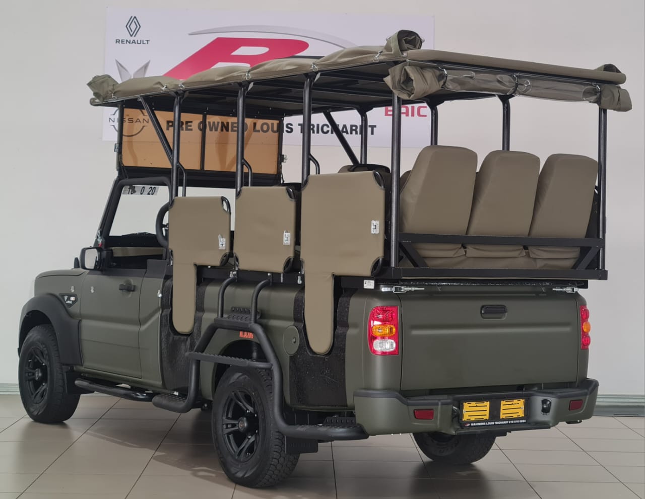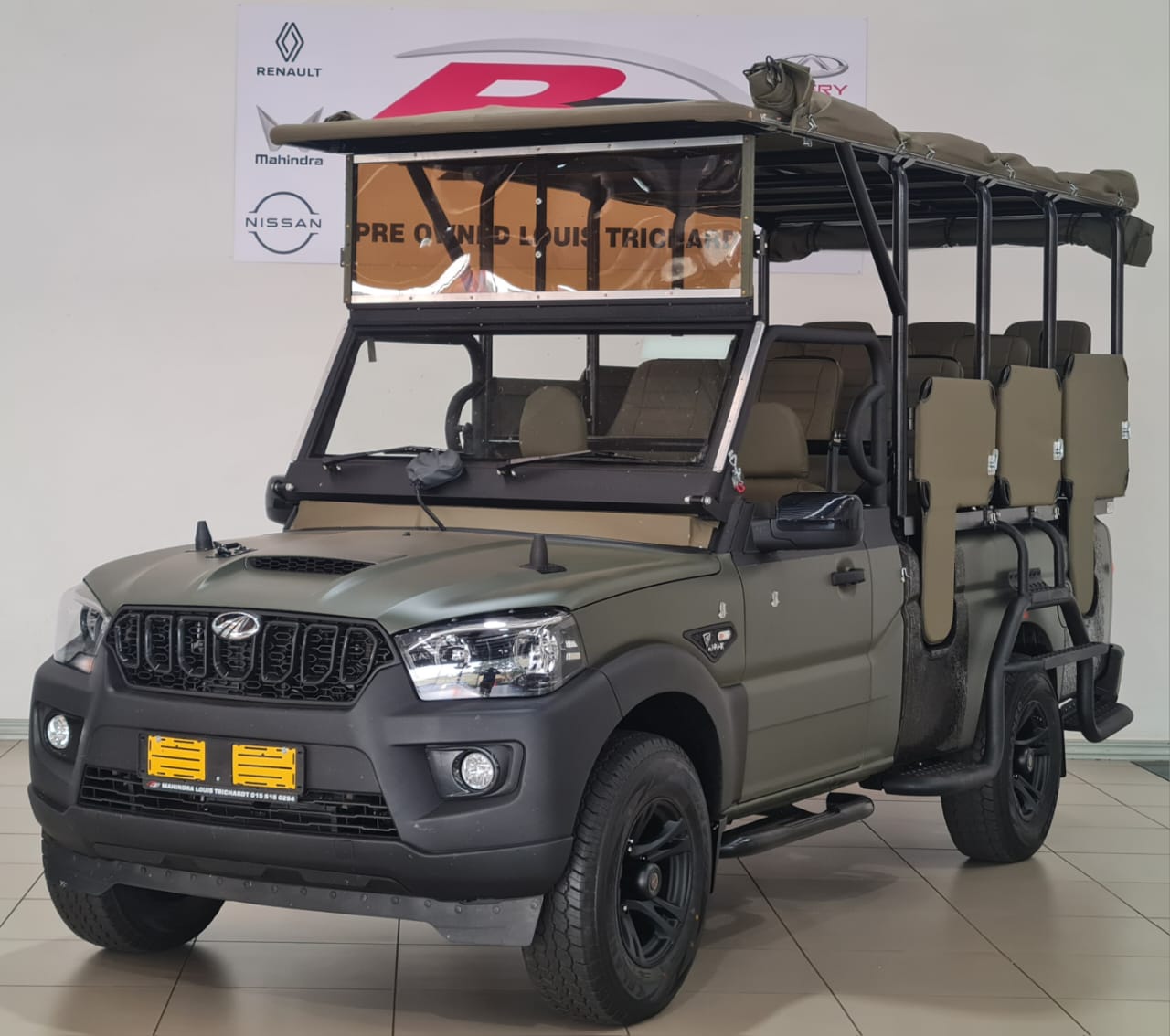 A VEHICLE BUILD BT SAFARI CONVERSION AND ARE KRUGER PARK READY GREEN 11 SEATS AIRCON SIDE STEPS RADIO POWER STEERING CANVAS TOP AND SIDE